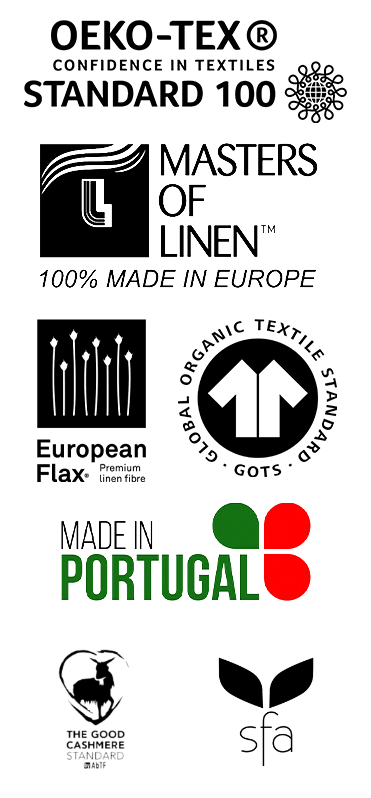 Most of our linen is Oeko-Tex certified, and many styles use organic linen. We also use blends such as GOTS-certified cotton, wood pulp, and ramie. For colder months, we incorporate wool and jersey—showing that linen can be worn in winter too. Additionally, we use mostly Oeko-Tex or Masters of Linen certified fabrics, and everything is European Flax certified, ensuring the finest quality.