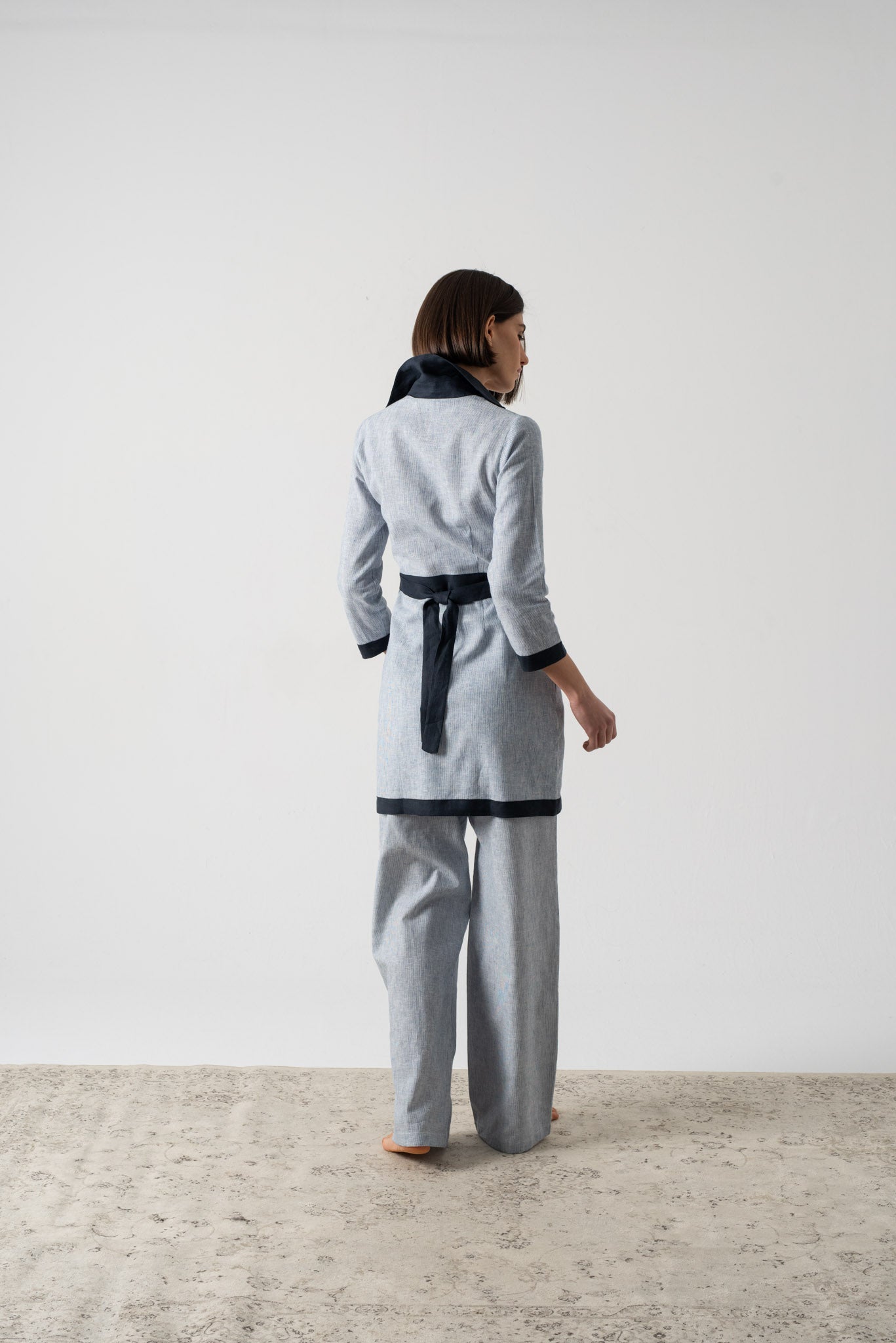 Most of our linen is Oeko-Tex certified, and many styles use organic linen. We also use blends such as GOTS-certified cotton, wood pulp, and ramie. For colder months, we incorporate wool and jersey—showing that linen can be worn in winter too. Additionally, we use mostly Oeko-Tex or Masters of Linen certified fabrics, and everything is European Flax certified, ensuring the finest quality.