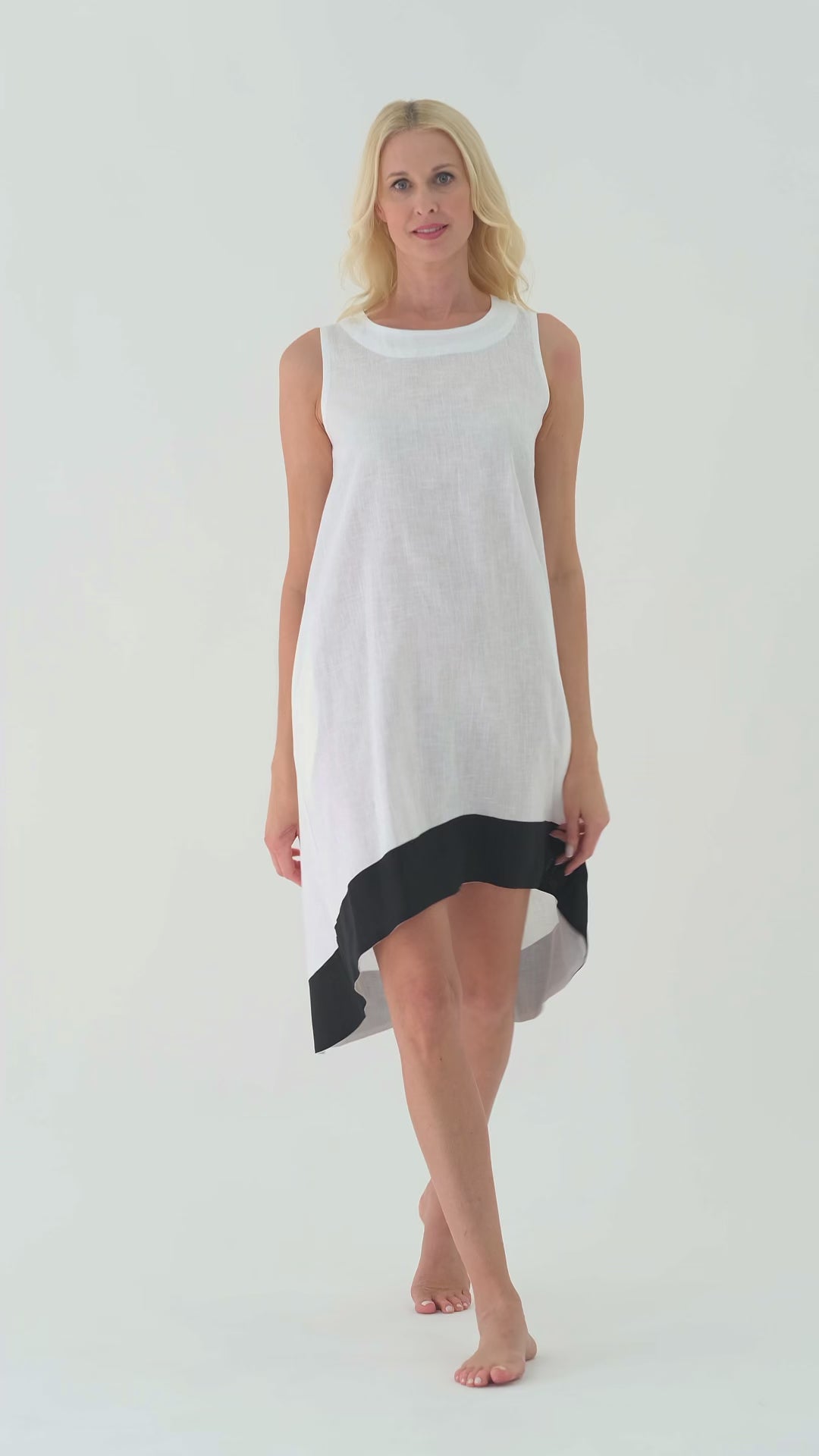 Introducing the Illya Linen Dress, a pure embodiment of effortless style. With its relaxed, oversized silhouette and asymmetrical high-low hemline, this sleeveless linen dress exudes modern charm while offering comfort for long days and casual outings alike. Complete with side pockets and a self-tie closure at the back, it seamlessly combines functionality with a polished aesthetic. Effortlessly chic and perfect for any occasion, this dress is sure to become a wardrobe staple for all your adventures.